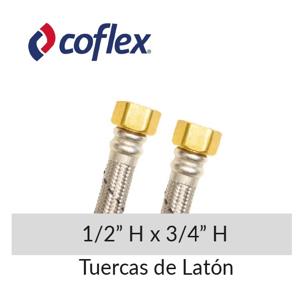 Acople Flexometálico para Calentador 1/2" x 3/4" en Acero Inoxidable - Flujo Mayor